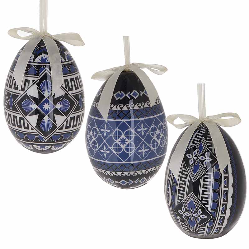 Σετ 12 κρεμαστά αυγά κατασκευασμένα από PL (πολυμερές πλαστικό) σε τρία διαφορετικά σχέδια και μπλε απόχρωση, ιδανικά για πασχαλινή και ανοιξιάτικη διακόσμηση. Τα αυγά διαθέτουν κορδόνι για εύκολο κρέμασμα σε δέντρα, γιρλάντες, παράθυρα ή τραπέζι, δημιουργώντας εντυπωσιακές πασχαλινές συνθέσεις.