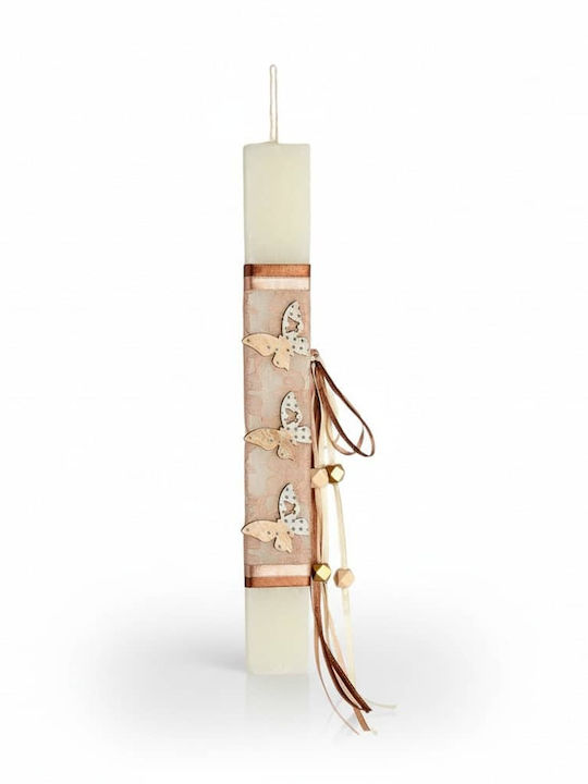 Πασχαλινή λαμπάδα Adorex σε εκρού απόχρωση, διακοσμημένη με πεταλούδες, ιδανική για ένα κομψό και ανοιξιάτικο πασχαλινό δώρο. Ο όμορφος και διακριτικός σχεδιασμός με πεταλούδες προσδίδει ρομαντική και ανοιξιάτικη αισθητική, κάνοντας τη λαμπάδα κατάλληλη για μικρούς και μεγάλους.