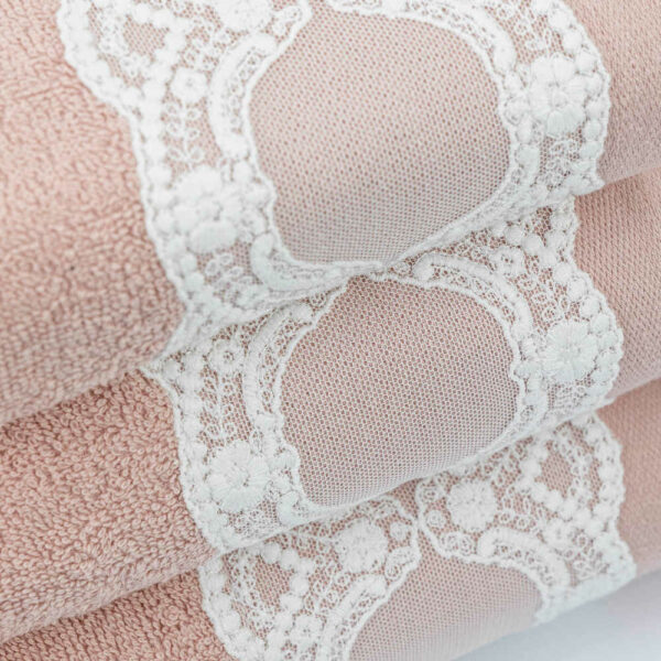 Το σετ πετσέτες Δάφνη της Borea Home Textiles συνδυάζει ποιότητα, πρακτικότητα και κομψότητα. Κατασκευασμένες από 100% βαμβακερό ύφασμα φροτέ πενιέ, είναι ιδιαίτερα απορροφητικές, ανθεκτικές και απαλές. Διακοσμημένες με κομψή δαντέλα, αποτελούν ιδανική επιλογή για ένα καλαίσθητο μπάνιο.