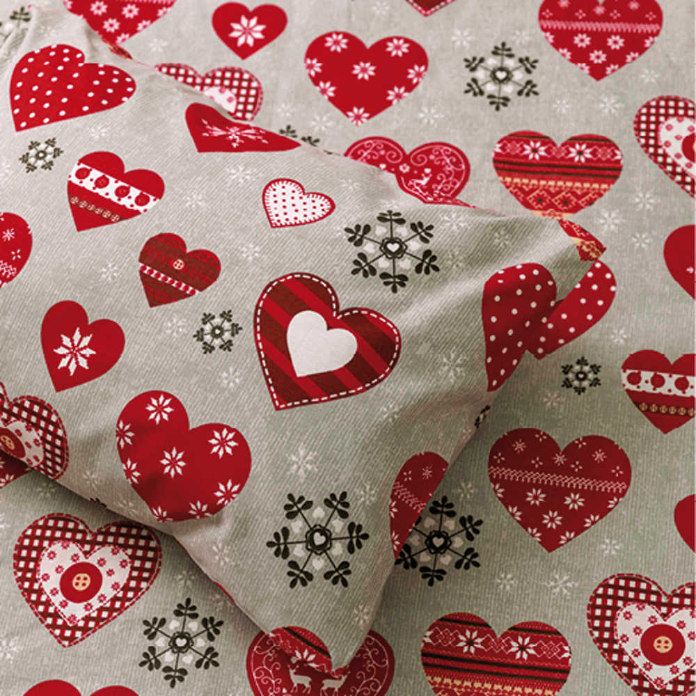 Δώστε μια ρομαντική και ζεστή ατμόσφαιρα στο υπνοδωμάτιο με το σετ σεντόνια Borea Καρδιές. Το εμπριμέ σχέδιο με καρδιές σε μπέζ και γκρι αποχρώσεις συνδυάζει κομψότητα και άνεση, ιδανικό για μονό κρεβάτι.