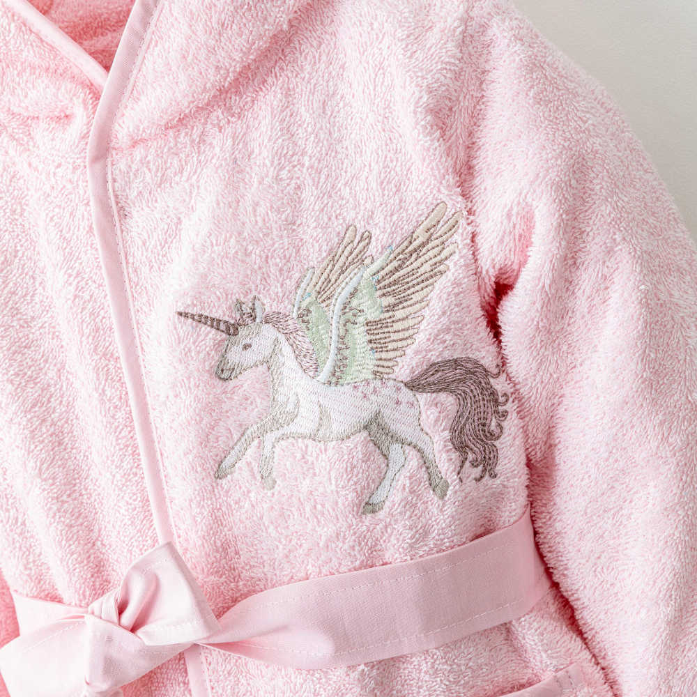 Διαθέτει κουκούλα, κεντημένο σχέδιο μονόκερο και ροζέ ρέλι περιμετρικά σε μανίκια, ζώνη και τσέπες, προσθέτοντας μια ρομαντική και παραμυθένια αισθητική. Μονόχρωμο σε απόχρωση πούδρας, ιδανικό για κοριτσάκια.