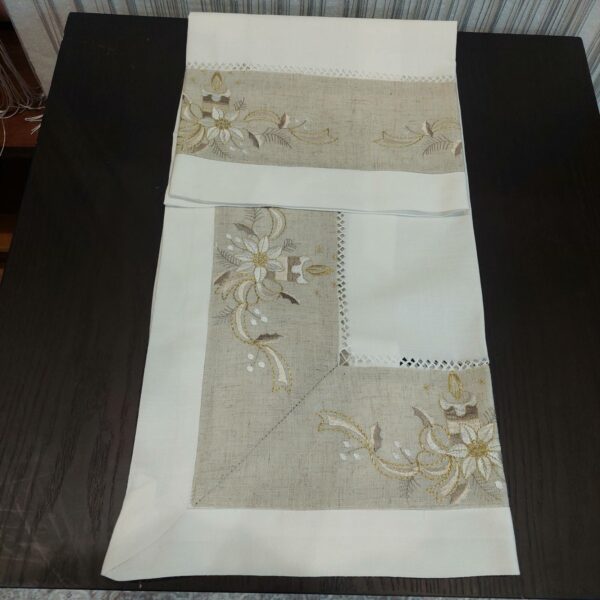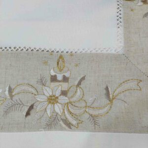 Το χριστουγεννιάτικο καρέ 83×83 cm κοφτό με κέντημα της KENTIMA, προσθέτει κομψή και εορταστική νότα στο τραπέζι σας. Η κοφτή τεχνική σε συνδυασμό με το διακοσμητικό κέντημα δημιουργεί ένα μοναδικό και εκλεπτυσμένο αποτέλεσμα, ιδανικό για το σαλόνι ή την τραπεζαρία σας κατά τη διάρκεια των γιορτών. Η υψηλής ποιότητας υφασμάτινη σύνθεση προσφέρει απαλή υφή και ανθεκτικότητα στον χρόνο.