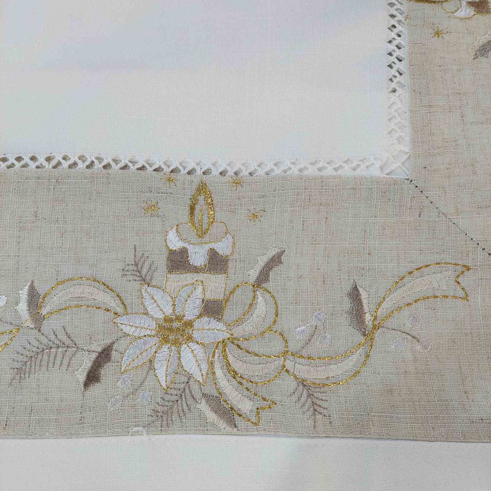Χριστουγεννιάτικο Καρέ 83×83 cm Κοφτό με Κέντημα