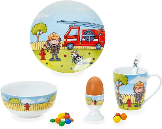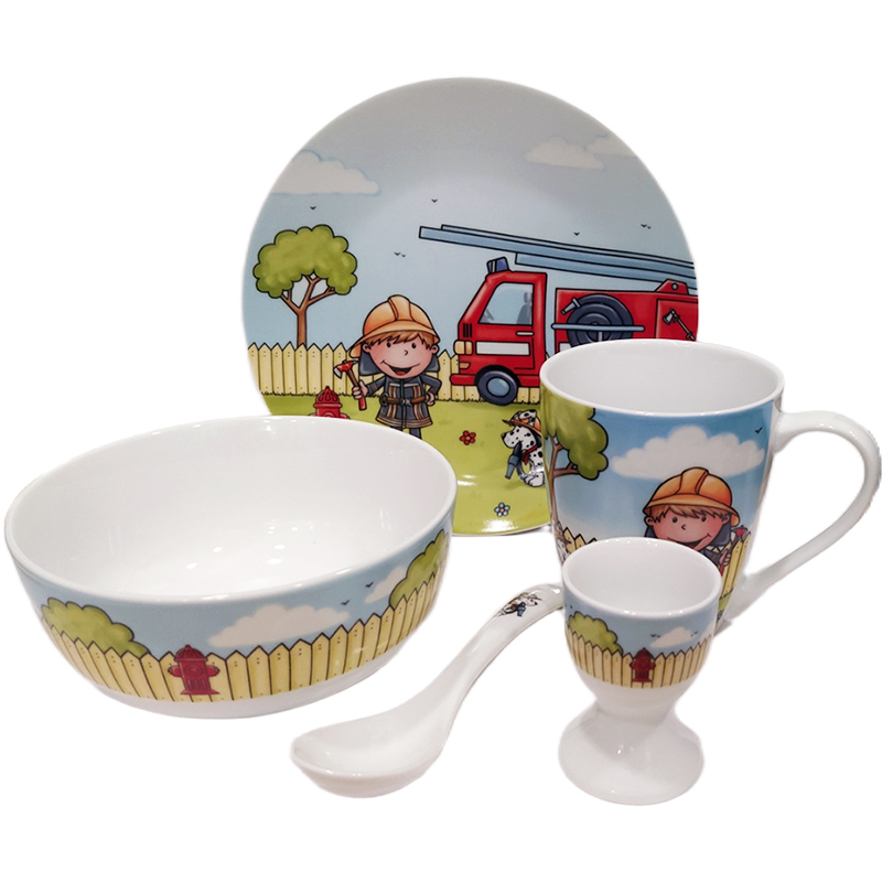 Χαρούμενο παιδικό σερβίτσιο φαγητού της Cryspo Trio με θέμα Fireman, ιδανικό για να κάνει το γεύμα των παιδιών πιο ευχάριστο. Το σετ αποτελείται από 5 τεμάχια κατασκευασμένα από ποιοτική πορσελάνη, με πολύχρωμο σχέδιο πυροσβέστη που ενθουσιάζει τα παιδιά.