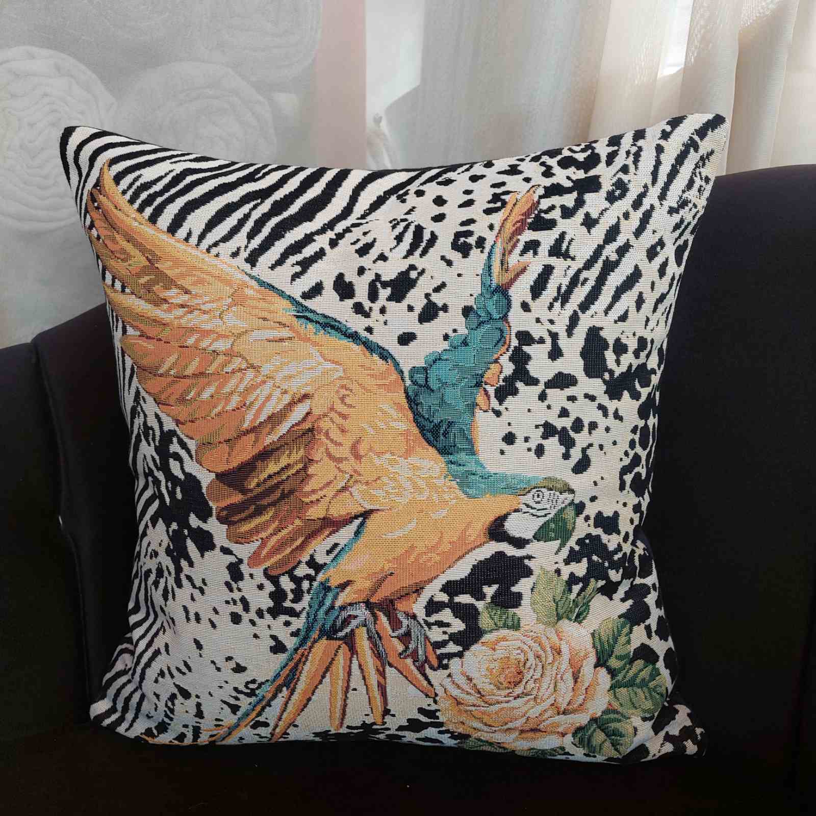 Κατασκευασμένη από ανθεκτικό ύφασμα υψηλής ποιότητας, διατηρεί τη φόρμα και τα χρώματά της, ενώ χάρη στο σχέδιο μπορεί να συνδυαστεί εύκολα με άλλα μαξιλάρια ή ριχτάρια.