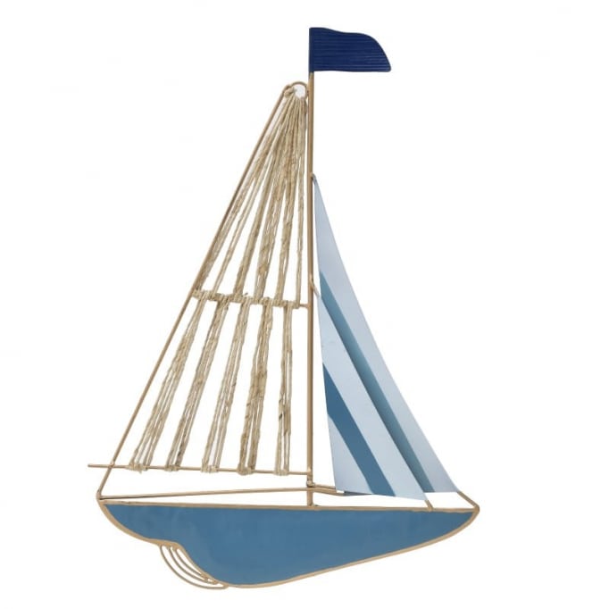 Καράβι διακοσμητικό τοίχου, σε χρώματα μπλε λευκό και διαστάσεις 42x4x60cm