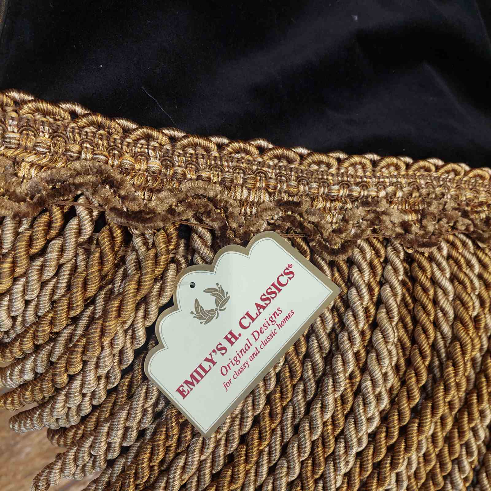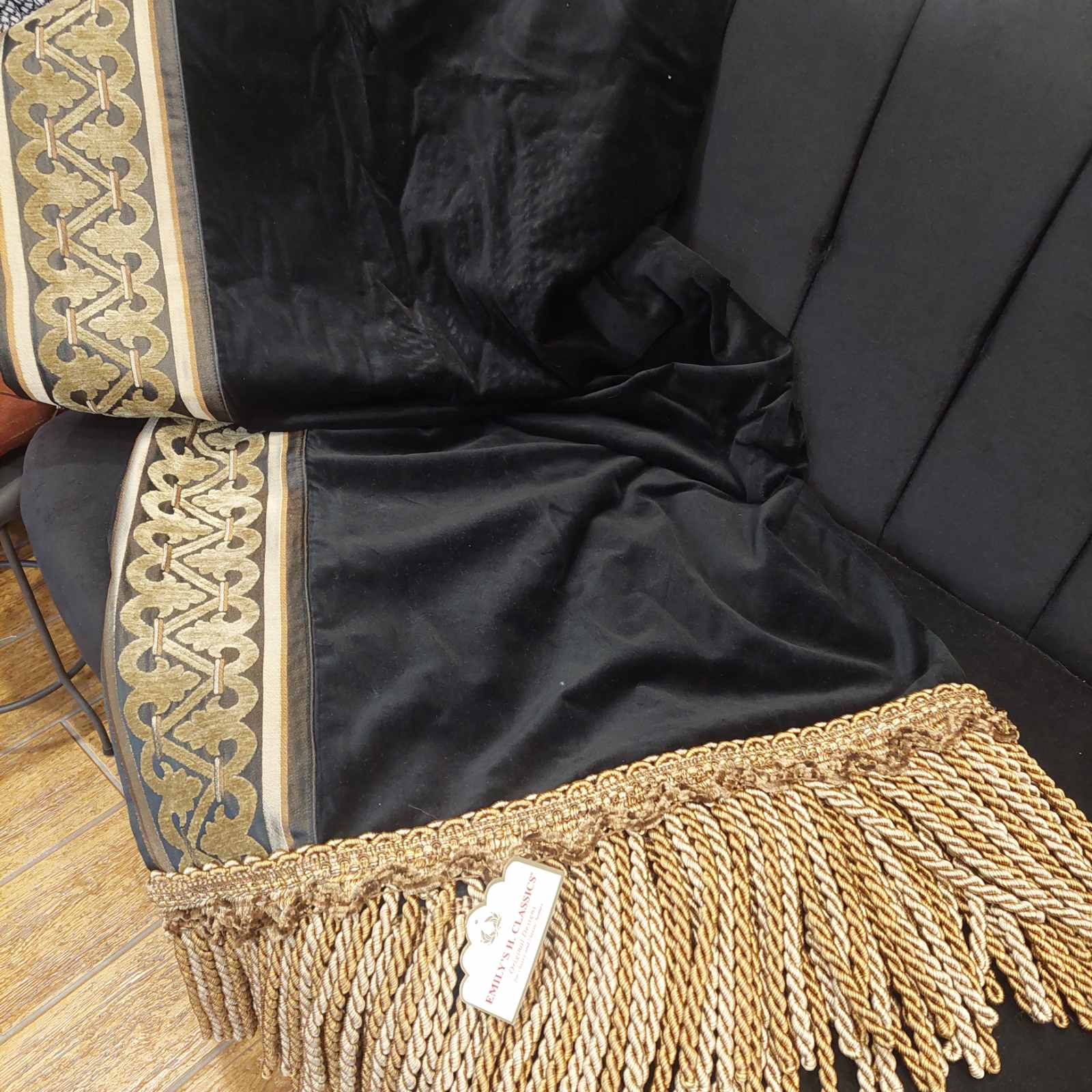 Κομψό ριχτάρι της Emily’s Home Classics από μαύρο βελούδο, διακοσμημένο με μπορντούρα και μακριά κρόσσια που προσθέτουν πολυτελή και ιδιαίτερη αισθητική στον χώρο. Ιδανικό για καναπέδες, πολυθρόνες ή κρεβάτια, χαρίζοντας ζεστασιά και στυλ στη διακόσμηση.