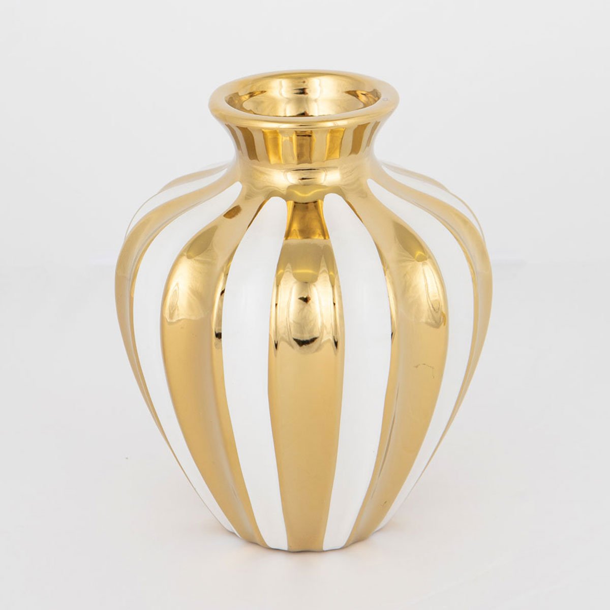 Αναδείξτε το χώρο σας με αυτό το κομψό διακοσμητικό βάζο Estheti, κατασκευασμένο από υψηλής ποιότητας κεραμικό υλικό. Με διαστάσεις Φ16.5 x 26 cm, αποτελεί ιδανική επιλογή για να φιλοξενήσει φρέσκα ή αποξηραμένα λουλούδια, αλλά και για να λειτουργήσει ως ανεξάρτητο διακοσμητικό στοιχείο σε ράφια, τραπέζια ή συνθέσεις.