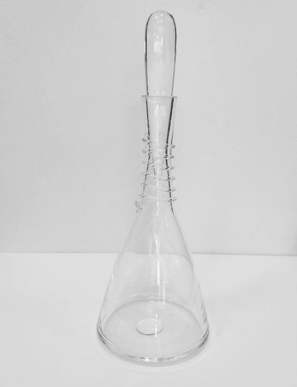 Κομψή γυάλινη καράφα διαστάσεων 39x15cm με μοναδική γραμμή και ιδιαίτερο πώμα. Ο πρωτότυπος σχεδιασμός της την καθιστά όχι μόνο πρακτική για σερβίρισμα νερού, χυμών ή κρασιού, αλλά και εντυπωσιακό διακοσμητικό στοιχείο για το τραπέζι ή το μπαρ.