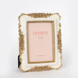 Το ανάγλυφο φλοράλ σχέδιο προσθέτει μια ρομαντική και κλασική αίσθηση, ενώ η διχρωμία δίνει μια μοντέρνα πινελιά που τραβάει τα βλέμματα. Το λαμπερό φινίρισμα ενισχύει την αίσθηση της πολυτέλειας και της φινέτσας, καθιστώντας την κορνίζα αυτή ιδανική για να πλαισιώσει αγαπημένες φωτογραφίες ή μικρά έργα τέχνης. Είναι κατάλληλη για φωτογραφία με διαστάσεις 13×18 cm.