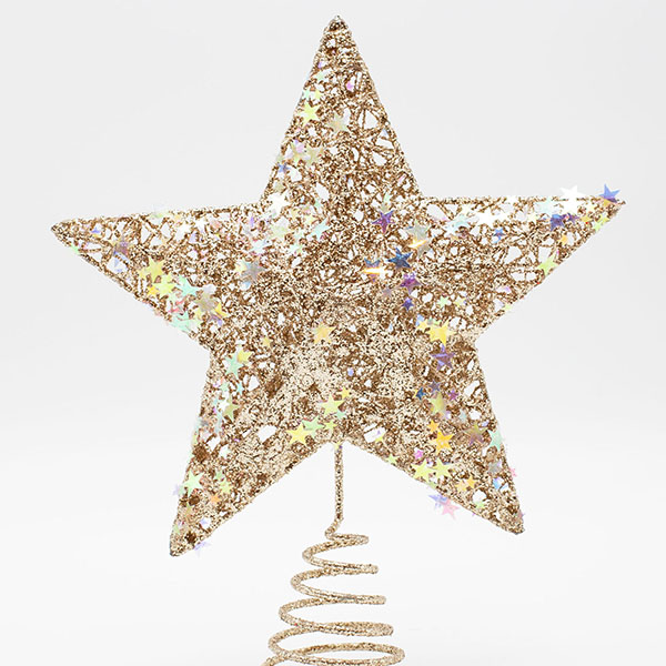 Η κορυφή δέντρου Eurolamp με σαμπανί νήμα και ιριδίζοντα αστεράκια είναι η τέλεια διακοσμητική προσθήκη για το χριστουγεννιάτικο δέντρο σας. Με διαστάσεις 20 x 23 cm, προσφέρει κομψότητα και γιορτινή λάμψη στην κορυφή του δέντρου, ολοκληρώνοντας τον στολισμό με μια εντυπωσιακή και λαμπερή πινελιά.