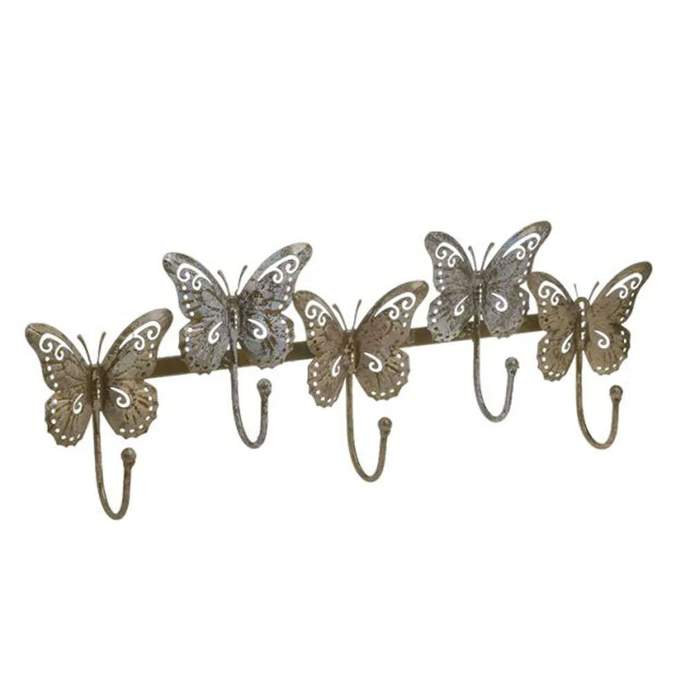 Κομψή μεταλλική κρεμάστρα με διακοσμητικές πεταλούδες, ιδανική για να προσθέσει ρομαντική και ανοιξιάτικη αισθητική στον χώρο σας. Ο ιδιαίτερος σχεδιασμός της συνδυάζει λειτουργικότητα και διακόσμηση, αποτελώντας όμορφη επιλογή για είσοδο, υπνοδωμάτιο ή παιδικό δωμάτιο.