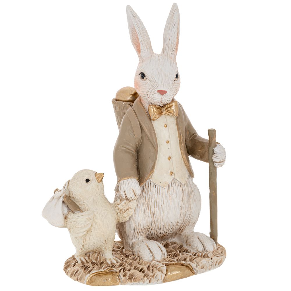 Χαριτωμένο πασχαλινό διακοσμητικό από πολυρεζίνη με λαγό και κοτοπουλάκι, ιδανικό για να προσθέσει μια γλυκιά και ανοιξιάτικη πινελιά στον χώρο σας. Ο τρυφερός σχεδιασμός του το καθιστά κατάλληλο για πασχαλινές συνθέσεις, διακόσμηση τραπεζιού ή βιτρίνας.