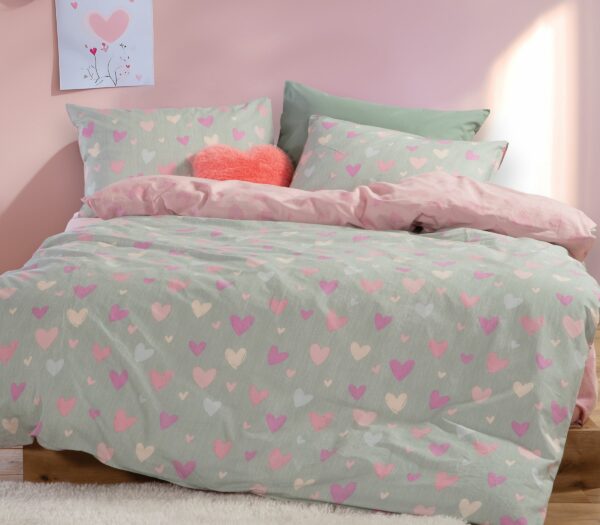 Χαρίστε άνεση και στυλ στο παιδικό δωμάτιο με το σετ σεντόνια Hearts Attack. Κατασκευασμένα από 100% βαμβάκι, 144 κλωστών, είναι απαλά, ανθεκτικά και φιλικά προς την ευαίσθητη επιδερμίδα των παιδιών.
