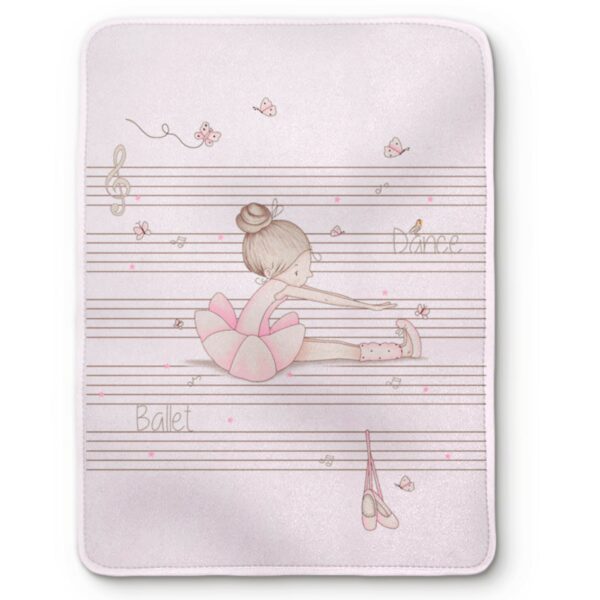 Η παιδική κουβέρτα Ballerina φέρνει ζεστασιά και παιχνιδιάρικη διάθεση στο παιδικό δωμάτιο. Το ροζ χρώμα της σε συνδυασμό με το όμορφο μπαλετικό σχέδιο προσφέρει μια χαρούμενη και γλυκιά ατμόσφαιρα, ιδανική για κορίτσια που αγαπούν τη χορευτική μαγεία.