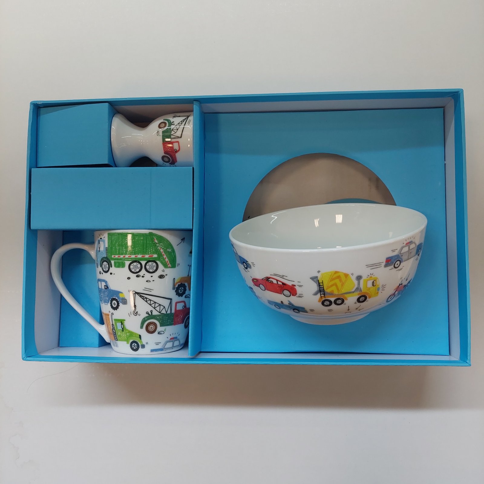 Παιδικό Σετ Φαγητού 3 Τεμαχίων Φορτηγά & Αυτοκίνητα Πορσελάνης σε Κουτί Δώρου – Crispo Trio