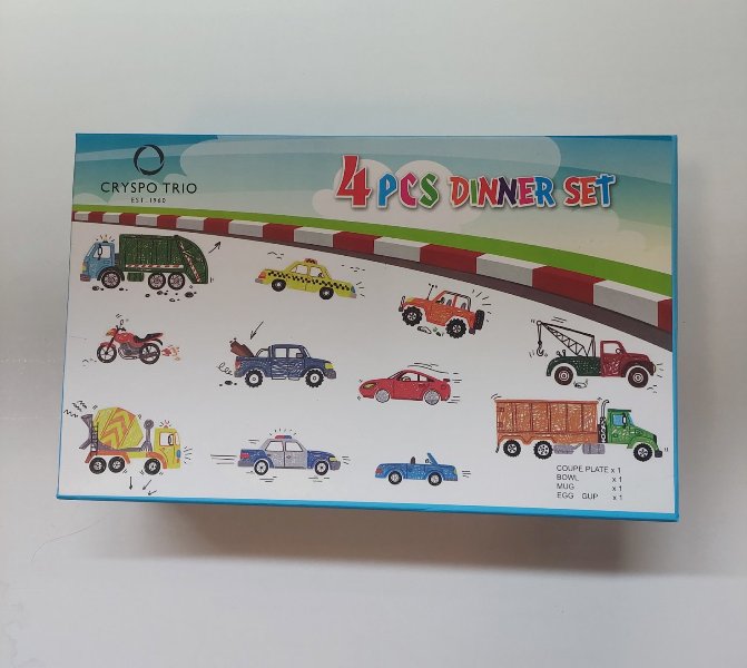 • Παιδικό Σετ Φαγητού 3 Τεμαχίων Φορτηγά & Αυτοκίνητα Πορσελάνης σε Κουτί Δώρου – Crispo Trio