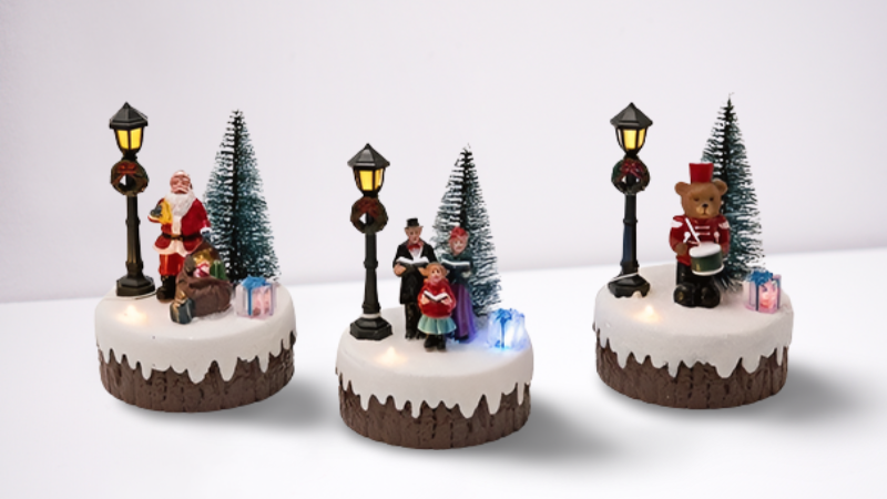 Φέρτε τη μαγεία των Χριστουγέννων στο σπίτι σας με τη διακοσμητική παράσταση με φως, διαθέσιμη σε σχέδια Άγιος Βασίλης, Χορωδία ή Αρκουδάκι. Κατασκευασμένη από ρητίνη και πλαστικό υψηλής ποιότητας, με φωτισμό LED που χαρίζει απαλή λάμψη, δημιουργεί ζεστή και γιορτινή ατμόσφαιρα σε κάθε χώρο.
