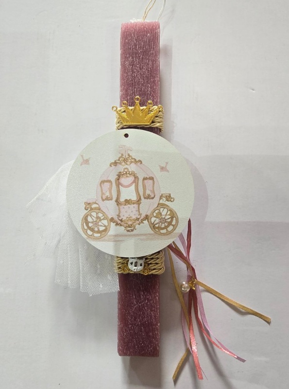 Πασχαλινή λαμπάδα 29 εκ. με διακοσμητική άμαξα, ιδανική για ένα παραμυθένιο πασχαλινό δώρο.