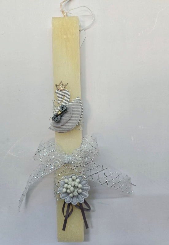 Καλαίσθητη πασχαλινή λαμπάδα διακοσμημένη με κύκνο σε ριγέ γκρι αποχρώσεις, ιδανική για όσους αγαπούν τις minimal και κομψές επιλογές. Ο κύκνος συμβολίζει την ομορφιά και την αρμονία, χαρίζοντας μια ιδιαίτερη αισθητική στη λαμπάδα. Με ύψος 29 εκ., αποτελεί μια ξεχωριστή πρόταση για πασχαλινό δώρο που συνδυάζει φινέτσα και μοντέρνο στυλ.
