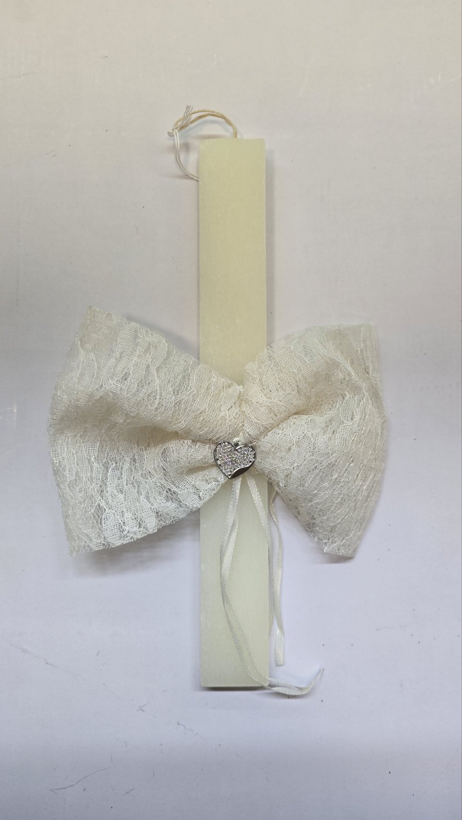 Ρομαντική πασχαλινή λαμπάδα διακοσμημένη με κομψό φιόγκο και γλυκιά καρδούλα, ιδανική για να χαρίσει μια τρυφερή και γιορτινή αίσθηση στο Πάσχα. Ο καλαίσθητος σχεδιασμός της την καθιστά εξαιρετική επιλογή για δώρο, προσφέροντας στυλ και ζεστασιά στη βραδιά της Ανάστασης. Με ύψος 29 εκ., συνδυάζει κομψότητα και διαχρονική ομορφιά.