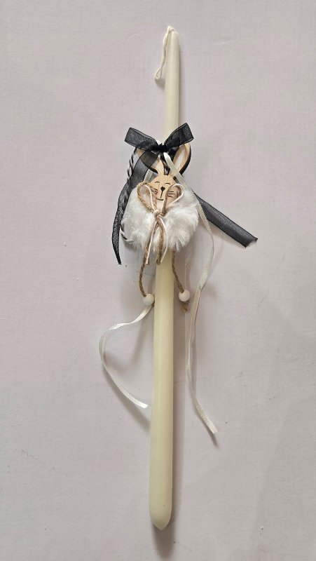 Χαριτωμένη και παιχνιδιάρικη πασχαλινή λαμπάδα διακοσμημένη με κουνελάκι, ιδανική για παιδιά και όσους αγαπούν τα γλυκά και ζωηρά σχέδια. Με ύψος 36 εκ., αποτελεί μια ξεχωριστή επιλογή για το πασχαλινό καλάθι ή ως δώρο, προσφέροντας μια χαρούμενη και μαγική νότα στην Ανάσταση.