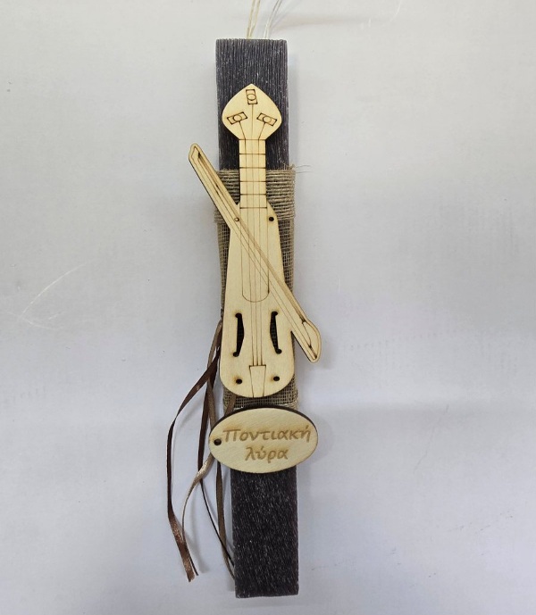 Πασχαλινή λαμπάδα διακοσμημένη με ποντιακή λύρα, ιδανική για όσους αγαπούν την παράδοση και τη μουσική. Με ύψος 28,5 εκ., συνδυάζει την παραδοσιακή αισθητική με το γιορτινό πνεύμα του Πάσχα, αποτελώντας μια ξεχωριστή επιλογή για δώρο ή το πασχαλινό καλάθι.