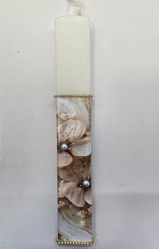 Όμορφη πασχαλινή λαμπάδα διακοσμημένη με ρομαντικά άνθη και διακριτικές πέρλες, ιδανική για να προσθέσει μια γλυκιά και κομψή πινελιά στο πασχαλινό τραπέζι ή στο καλάθι της Ανάστασης. Ο ιδιαίτερος σχεδιασμός της συνδυάζει ρομαντισμό και πολυτέλεια, καθιστώντας την εξαιρετική επιλογή για δώρο ή προσωπική χρήση.