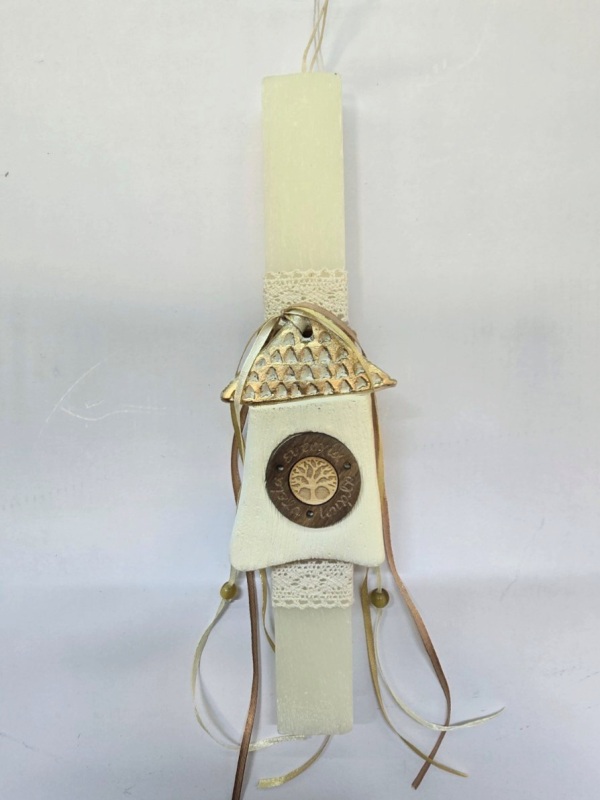 Χαριτωμένη πασχαλινή λαμπάδα διακοσμημένη με μικρό σπιτάκι, ιδανική για παιδιά και όσους αγαπούν τα παιχνιδιάρικα και γλυκά σχέδια. Με ύψος 28 εκ., προσφέρει μια ζεστή και φιλόξενη νότα στο πασχαλινό καλάθι ή ως δώρο, δημιουργώντας μια ξεχωριστή ατμόσφαιρα την Ανάσταση.