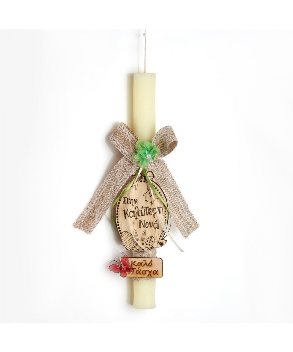 Πασχαλινή λαμπάδα με μήνυμα «Στην Καλύτερη Νονά», ιδανική για ένα όμορφο και συμβολικό πασχαλινό δώρο. Ο κομψός και διακριτικός σχεδιασμός την καθιστά μια ξεχωριστή επιλογή για να εκφράσετε την αγάπη και την εκτίμησή σας στη νονά.