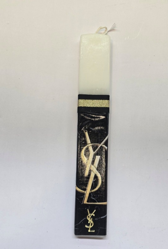 Εντυπωσιακή πασχαλινή λαμπάδα εμπνευσμένη από τη διαχρονική αισθητική του Yves Saint Laurent, ιδανική για όσους αγαπούν τη μόδα και τις κομψές επιλογές. Ο μοντέρνος σχεδιασμός της αποπνέει πολυτέλεια και στυλ, αποτελώντας ένα ξεχωριστό πασχαλινό δώρο που θα τραβήξει τα βλέμματα. Με ύψος 30 εκ., είναι μια elegant πρόταση για ένα ιδιαίτερο Πάσχα.