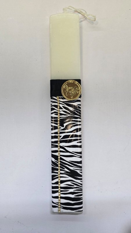 Εντυπωσιακή πασχαλινή λαμπάδα με θέμα ζέβρα, ιδανική για όσους αγαπούν τα animal prints και τα ιδιαίτερα σχέδια. Ο μοντέρνος και παιχνιδιάρικος χαρακτήρας της προσθέτει στυλ και πρωτοτυπία, κάνοντάς την μια ξεχωριστή επιλογή για πασχαλινό δώρο. Με ύψος 30 εκ., είναι κατάλληλη για μικρούς και μεγάλους που θέλουν κάτι διαφορετικό για την Ανάσταση.