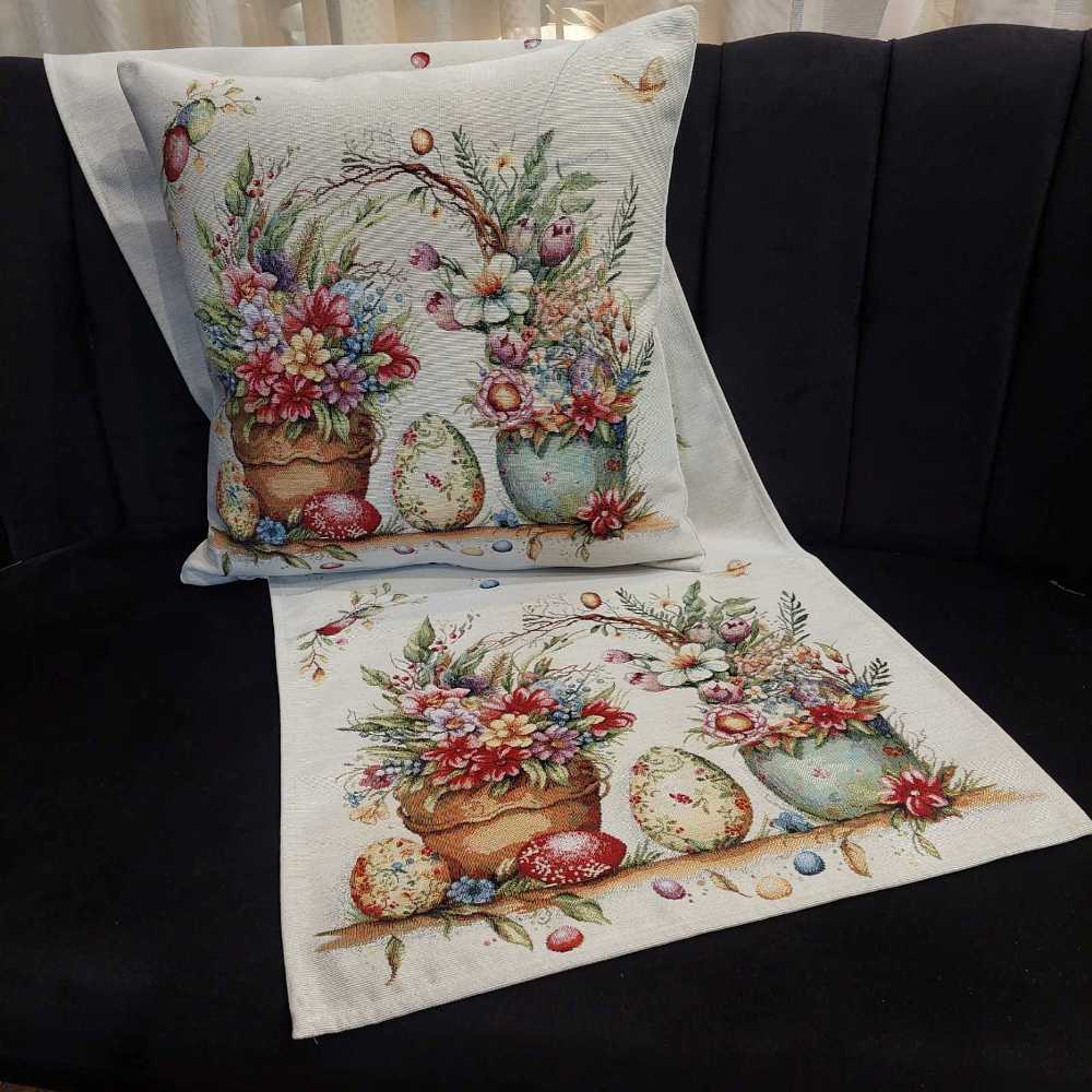 Όμορφο πασχαλινό σετ διακόσμησης τραπεζιού, ιδανικό για να δημιουργήσει μια γιορτινή και ανοιξιάτικη ατμόσφαιρα στο πασχαλινό τραπέζι. Το σετ αποτελεί μια κομψή επιλογή για τη διακόσμηση της τραπεζαρίας, του σαλονιού ή του μπουφέ, προσθέτοντας χρώμα και χαρούμενη διάθεση στον χώρο.