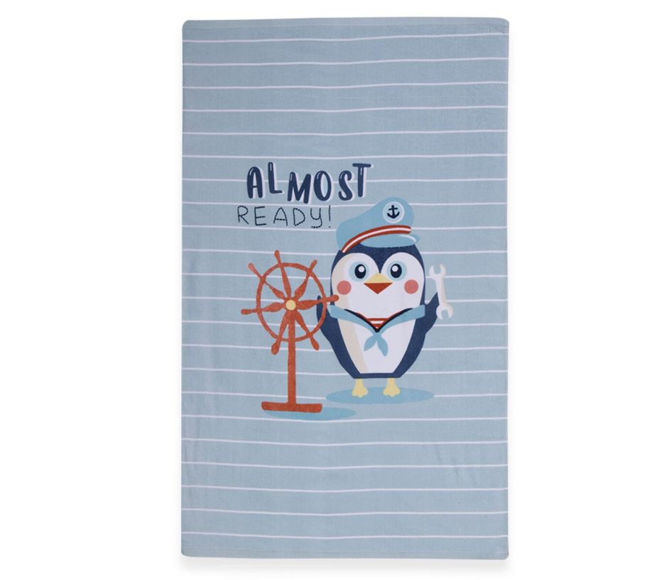 Υπέροχη παιδική πετσέτα θαλάσσης, με όμορφες, καλοκαιρνές παραστάσεις, και ζωντανά χρώματα, που θα ενθουσιάσουν εσάς και το παιδάκι σας. Η ποιότητά της είναι εξαιρετική, με ύφασμα βελουτέ, από 100% βαμβάκι, βάρους 360gr/m2, θα δώσει στο παιδί την ζεστασία και την απορροφητικότητα που του αρμόζει μετά τις βουτιές του στην θάλασσα. Η διάστασή της είναι 70x120cm.