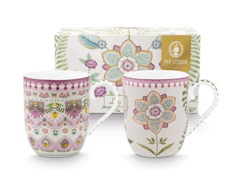 Κομψό σετ 2 πορσελάνινων κουπών της Pip Studio από τη συλλογή Lily & Lotus, ιδανικό για καφέ, τσάι ή άλλα ζεστά ροφήματα. Το εκλεπτυσμένο λουλουδάτο σχέδιο προσδίδει ρομαντική και elegant αισθητική, αναβαθμίζοντας την εμπειρία σερβιρίσματος.