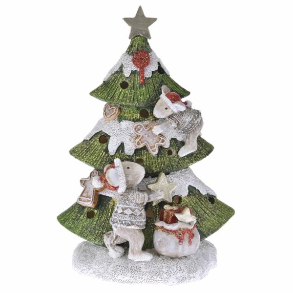 Κατασκευασμένο από πολυρεζίνη, είναι ανθεκτικό και κατάλληλο για επαναλαμβανόμενη χρήση. Τα λεπτομερή ποντικάκια που περιβάλλουν το δενδράκι δίνουν ζωντάνια και χαρούμενη διάθεση στον χώρο, ιδανικό για χριστουγεννιάτικη διακόσμηση ή ως πρωτότυπο δώρο.