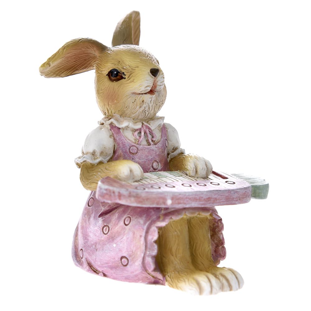 Χαριτωμένο διακοσμητικό ροζ λαγουδάκι που κρατά αρμόνιο, κατασκευασμένο από πολυρεζίνη. Ο παιχνιδιάρικος και ανοιξιάτικος σχεδιασμός του το καθιστά ιδανικό για πασχαλινή διακόσμηση, προσθέτοντας μια γλυκιά και χαρούμενη νότα σε κάθε χώρο. Με διαστάσεις 7x6x8 εκ., είναι κατάλληλο για τοποθέτηση σε ράφι, τραπέζι ή πασχαλινή σύνθεση.