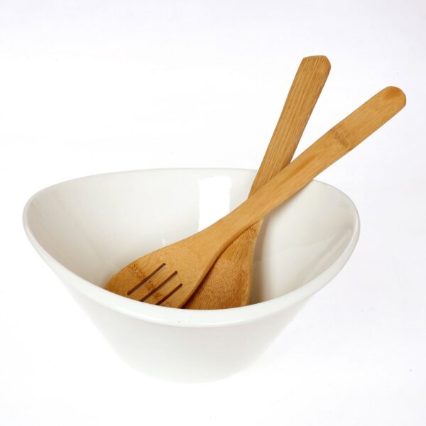 Στρογγυλή σαλατιέρα με Bamboo σκεύη.