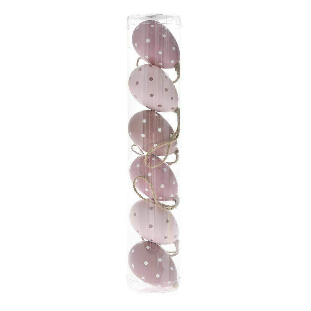 Σετ από 6 κρεμαστά πλαστικά αυγά, ιδανικά για να διακοσμήσετε πασχαλινά δέντρα, κλαδιά ή άλλες ανοιξιάτικες συνθέσεις. Τοποθετημένα σε πρακτικό κουτί για εύκολη αποθήκευση, αποτελούν μια όμορφη επιλογή για να προσθέσετε χρώμα και γιορτινή διάθεση στον χώρο σας. Με διάσταση 6×4 εκ., είναι ελαφριά και έτοιμα για κρέμασμα