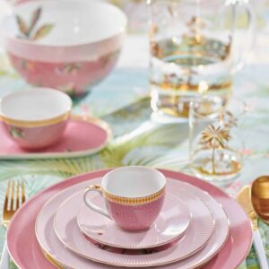 Ένα υπέροχο σετ φλιτζάνια espresso με πιατάκια, ιδανικό για τον καφέ σας, της Pip Studio. Ανήκει στην σειρά La Majorelle που είναι εμπνευσμένη από τους υπέροχους Μαροκινούς Κήπους και συνδυάζει τα έντονα χρώματα, με τα εξωτικά φυτά και λουλούδια, ενώ τα πιθηκάκια και οι μαϊμούδες διακοσμούν ιδιαίτερα κάποια κομμάτια. Οι τελείες και οι ρίγες στο φόντο προσφέρουν έναν όμορφο και μοντέρνο σχεδιασμό.