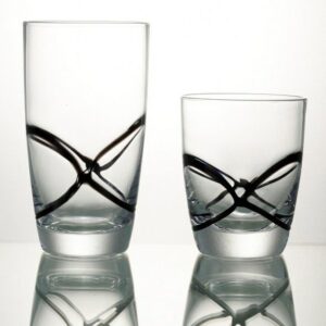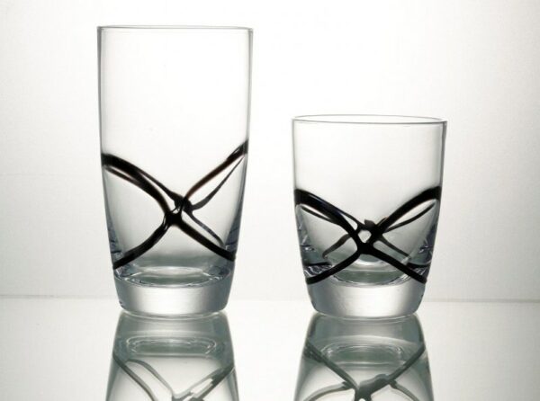 Σετ ποτήρια νερού 6 τεμαχίων από χειροποίητο φυσητό γυαλί με ανάγλυφα σχέδια σε μαύρο χρώμα της σειράς X-treme από την CRYSPO TRIO – Χωρητικότητας: 455ml.