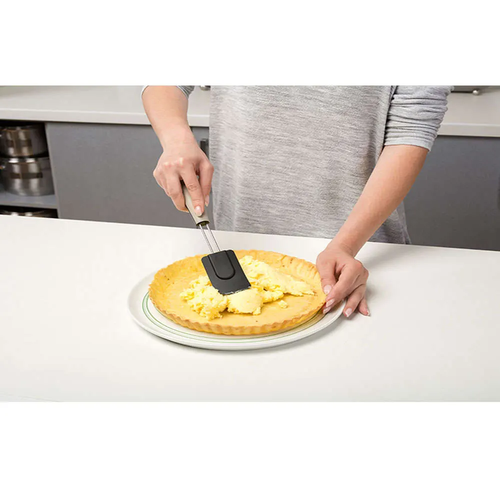 Ο εργονομικός σχεδιασμός κάνει την Σπάτουλα Μαρίζ Misty το αγαπημένο εργαλείο κάθε οικιακού μάγειρα ή ζαχαροπλάστη. Διευκολύνει το ανακάτεμα και το άδειασμα όλου του μείγματος από τα πλαϊνά του σκεύους, χάρη στην εργονομική κεφαλή από σιλικόνη υψηλής ποιότητας. Διαθέτει αντιολισθητική soft touch λαβή, για άνετο και ακριβή χειρισμό.
